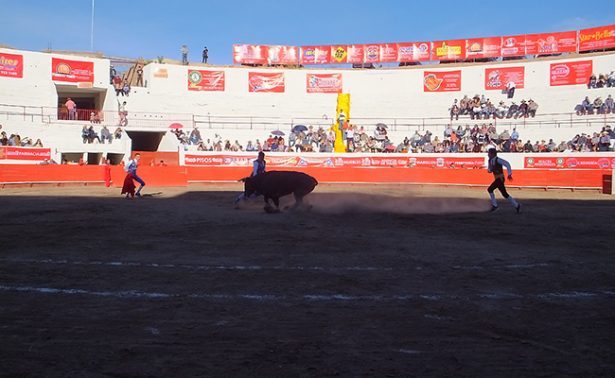 Juchipila, zac.- La plaza Monumental, se tiñó de sangre debido a la grave cornada que sufrió el joven Emmanuel Ayala, integrante de los Recortadores Españoles.